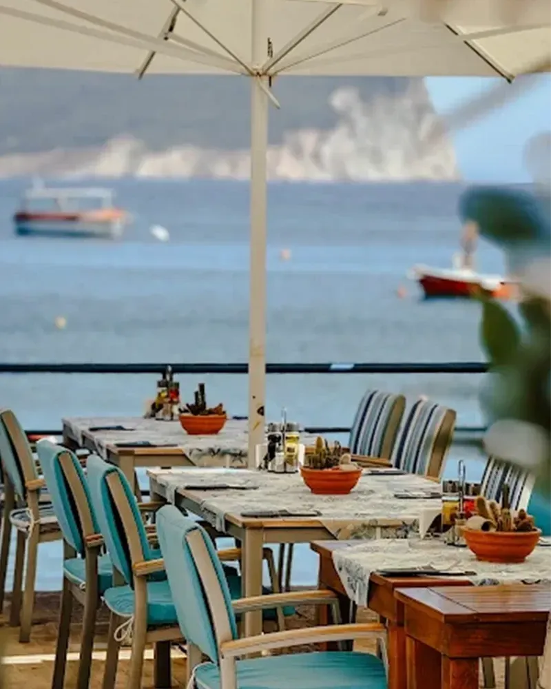 Klassisches Fischrestaurant mit herrlichem Meerblick, spezialisiert auf frischen Fisch, Meeresfrüchte und traditionelle mediterrane Küche. Ideal für ein entspanntes Essen am Wasser.